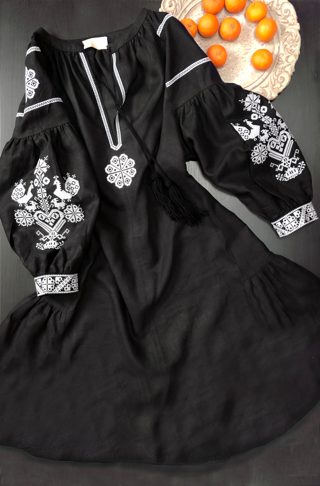 Folk chic šaty so štylizovanou ľudovou výšivkou zo Záriečia.