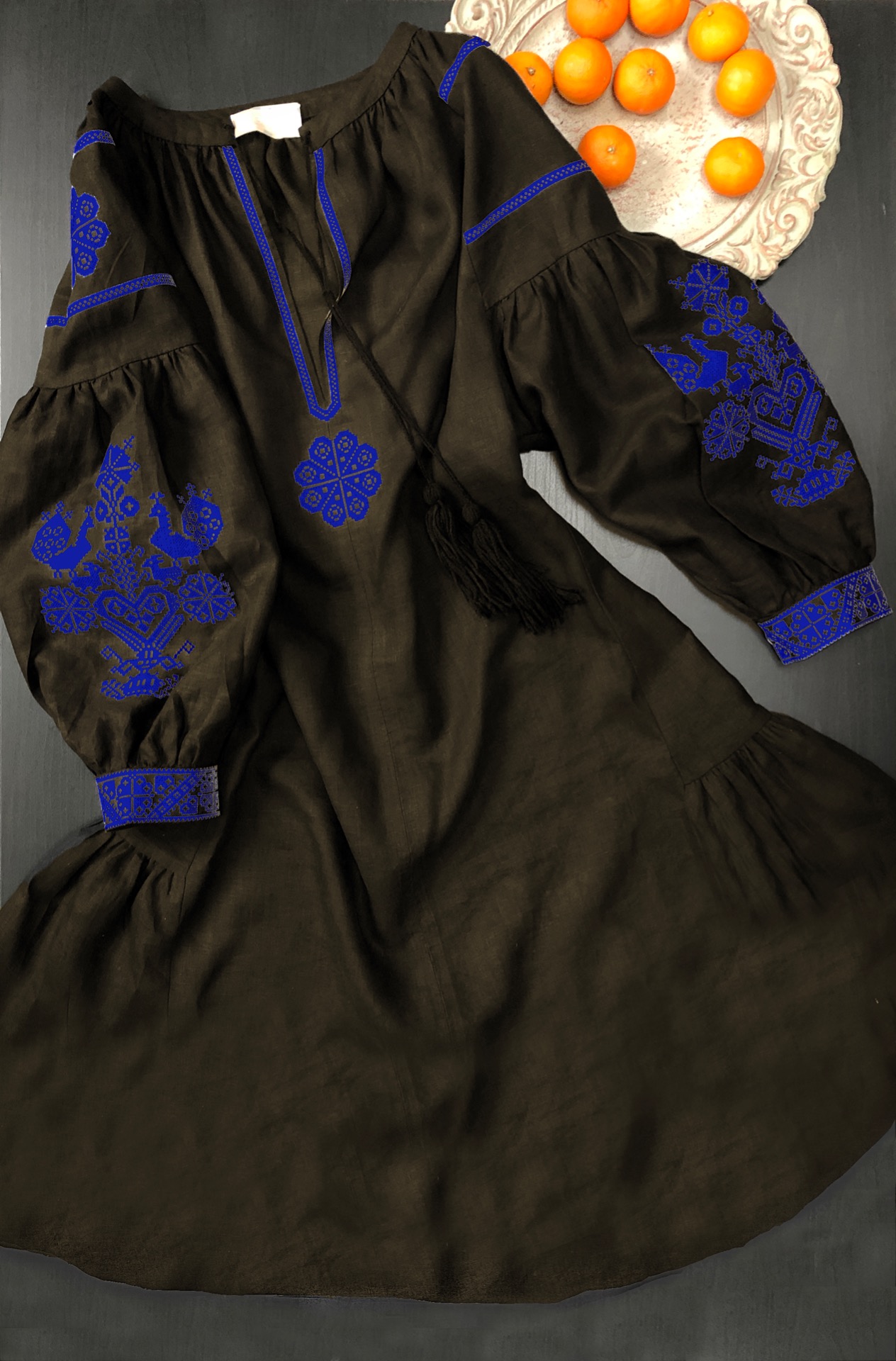 Folk chic šaty so štylizovanou ľudovou výšivkou zo Záriečia.