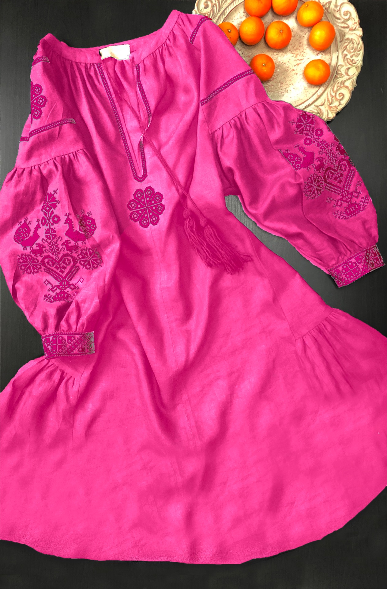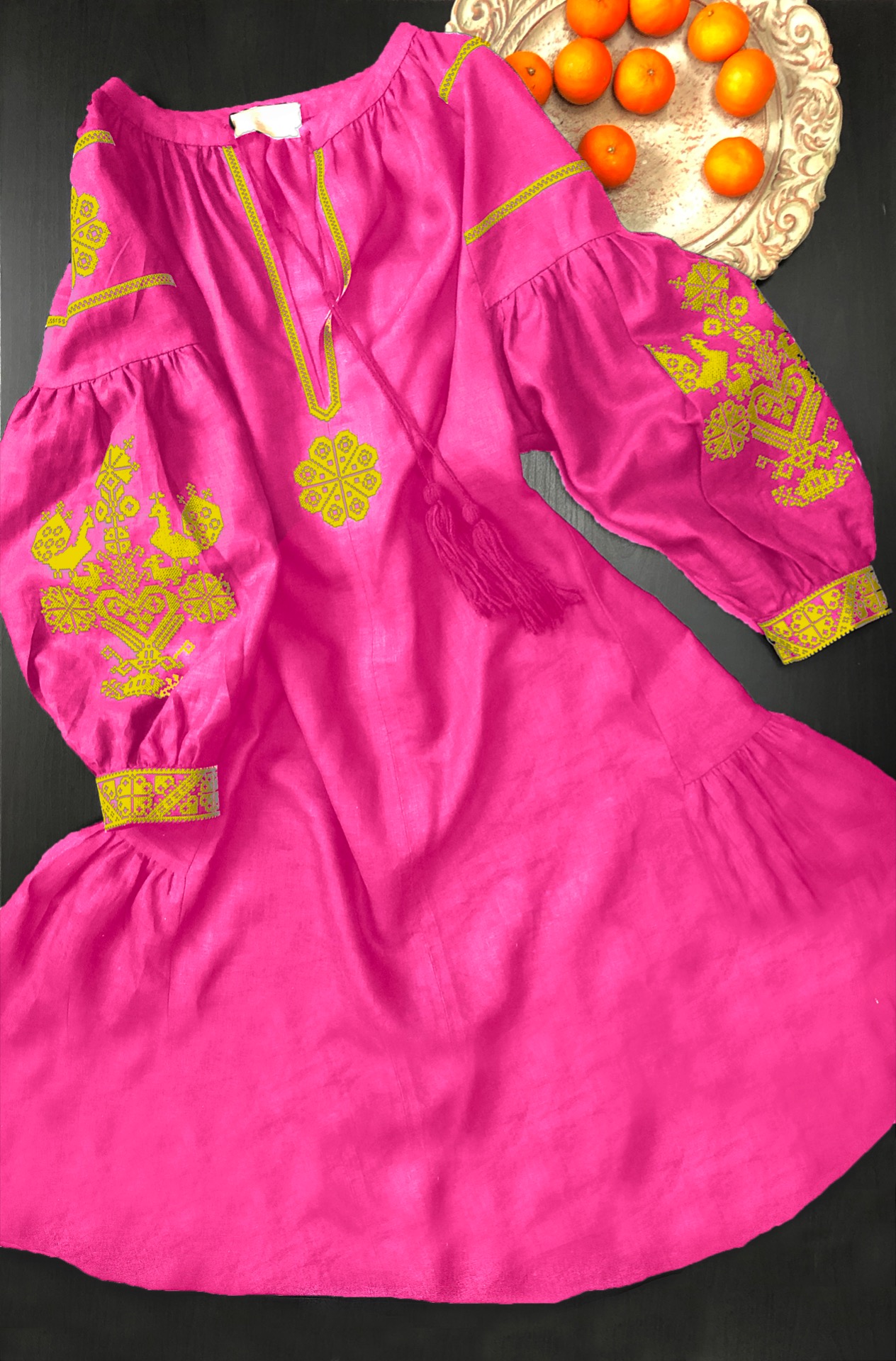 Folk chic šaty so štylizovanou ľudovou výšivkou zo Záriečia.