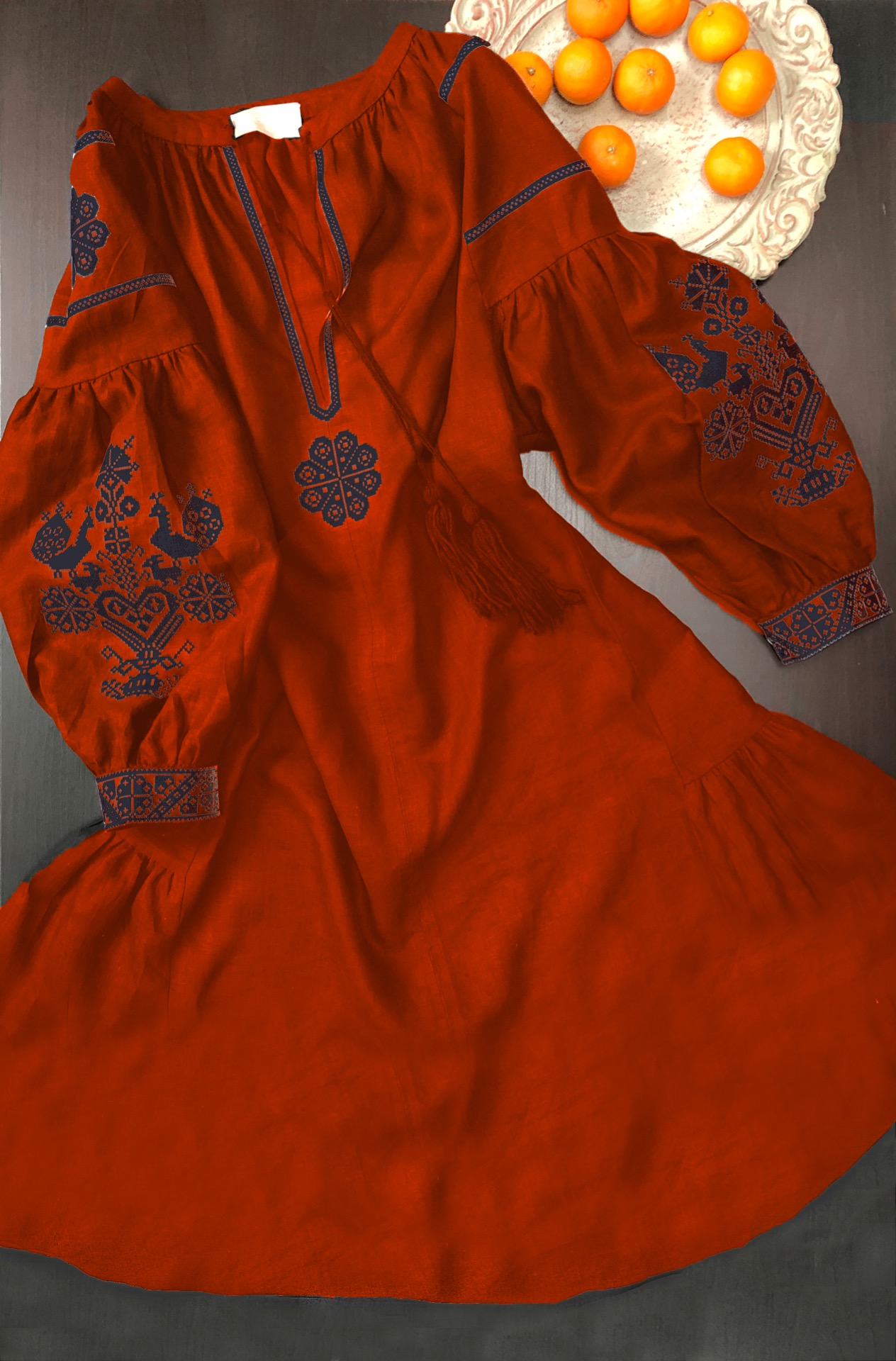 Folk chic šaty so štylizovanou ľudovou výšivkou zo Záriečia.